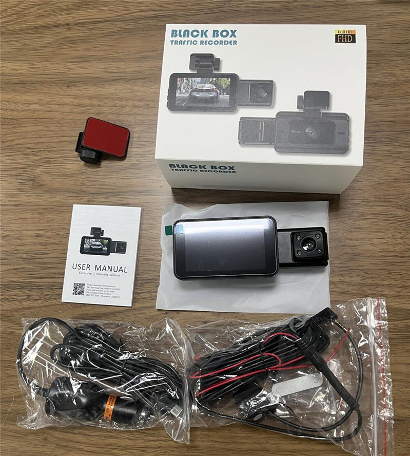 3-Channel Dash Cam with Night Vision – 1080P FHD, WDR, Motion Detection & G-Sensor (Black)