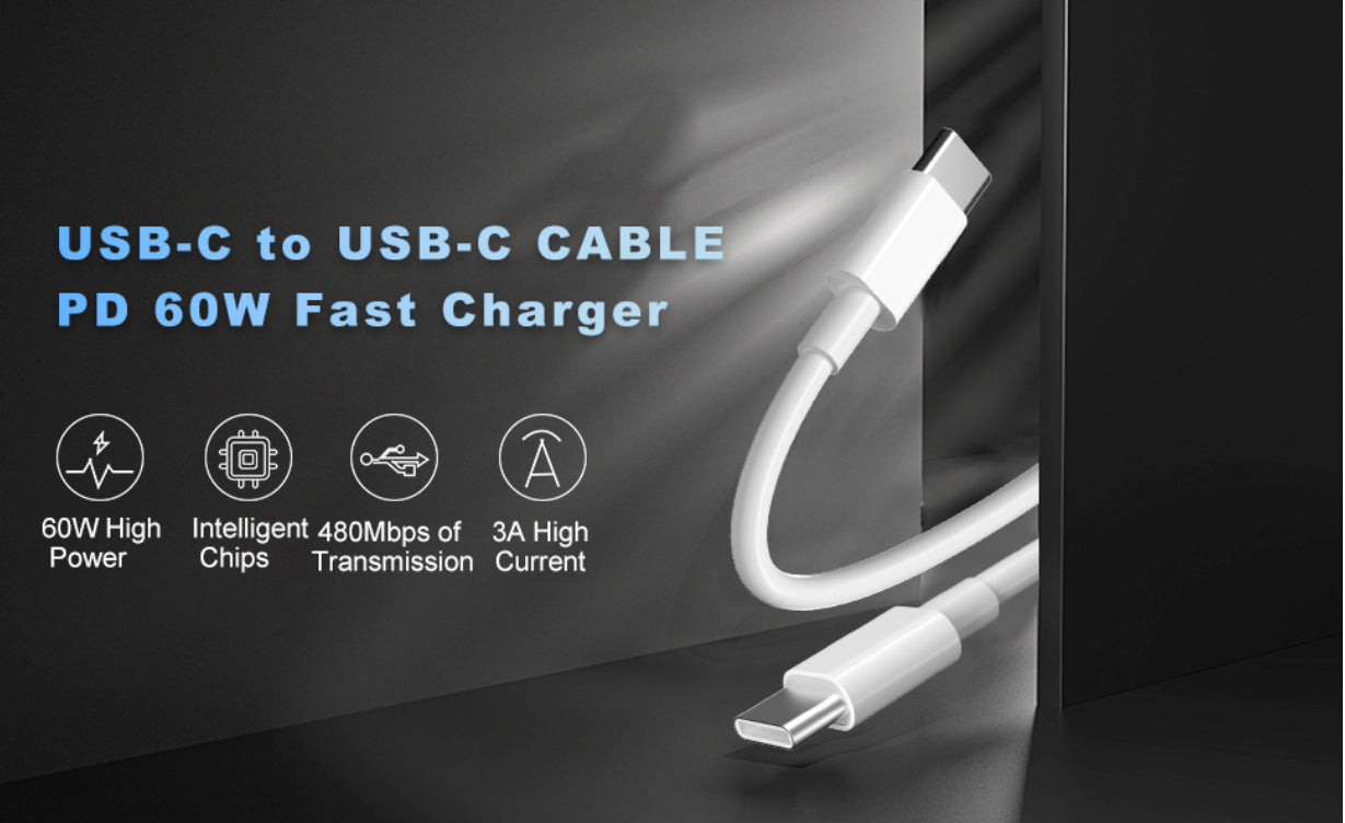 Introducing the 3.3ft(1m) USB-C to USB-C Fast Charging and Data Cable — your go-to solution for super-fast 60W charging and 480Mbps high-speed data transfer. Built with a rugged TPE + ABS jacket and pure copper conductor, this cable ensures long-lasting durability, handling over 10,000 bends without breaking. Equipped with a PD intelligent chip for safe and efficient power delivery, it’s perfect for laptops, smartphones, tablets, cameras, smartwatches, game consoles, and more.