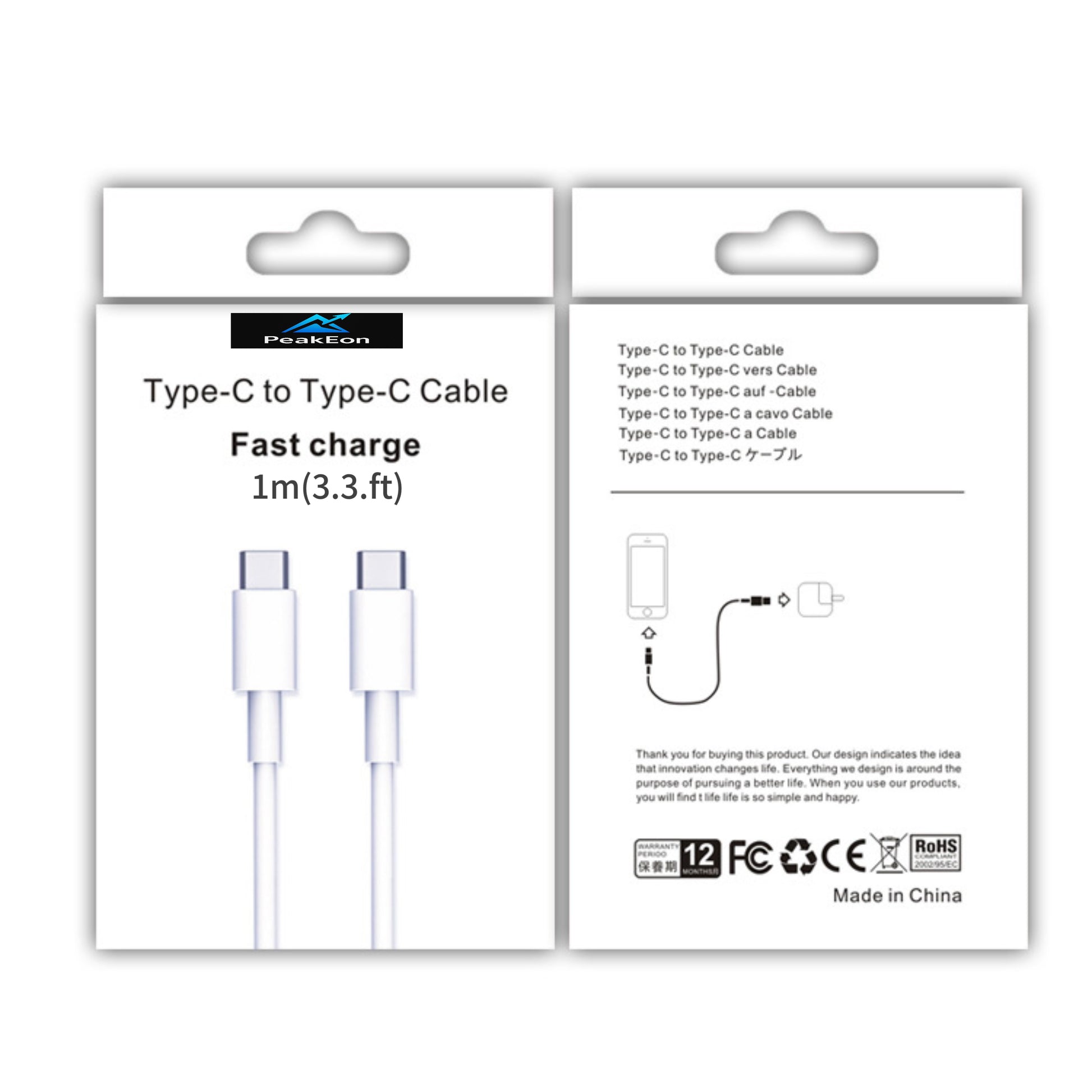 PeakEon 3.3ft (1M) Type-C to Type-C Fast Charging Cable | 60W PD, 3A High-Speed Data Sync for Smartphones,tablets,smartwatches,Laptop and More